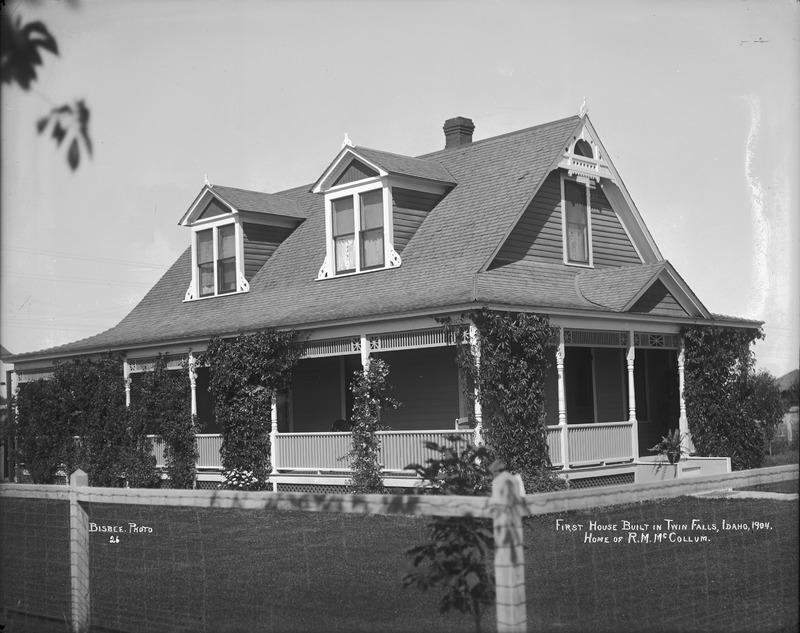 - "First house built in Twin Falls, Idaho, 1904. Home of R. M. McCollum"