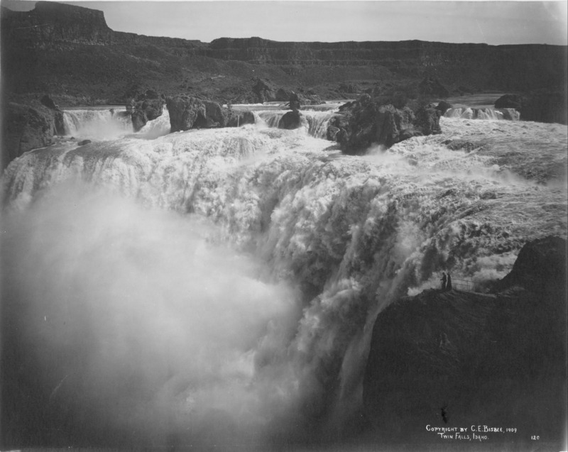 - Shoshone Falls; two people on walkway above the falls