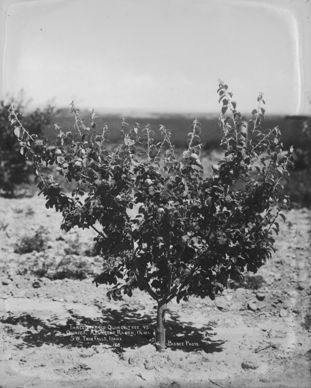 - "Three year old quince tree, 45 quinces. A.J. Greene Ranch, 1 1/2 miles southwest of Twin Falls, Idaho"
