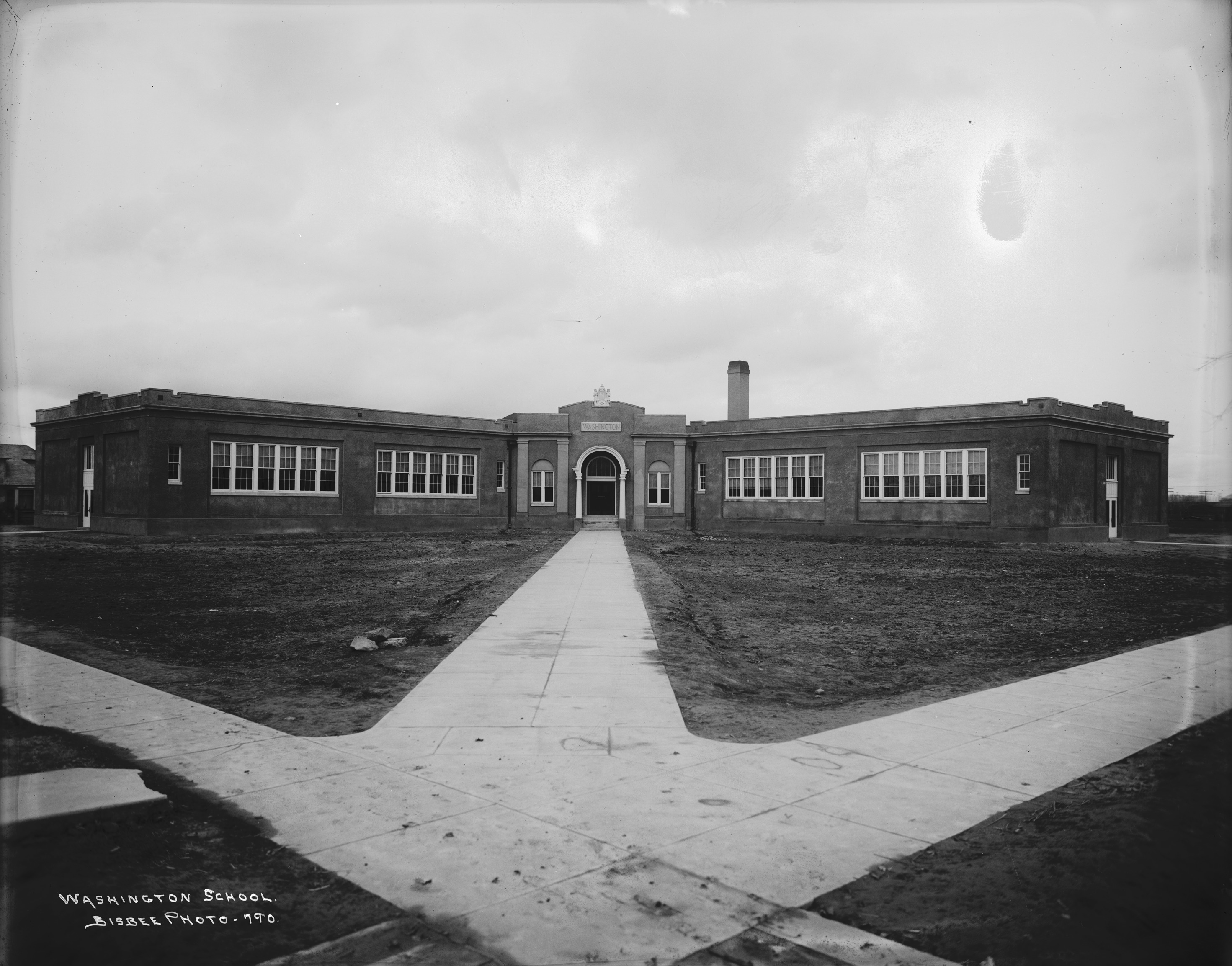 - "Washington School;" view of Washington Elementary School, looking northeast from the corner of Blue Lakes Blvd and Addison Ave (at the Five Points with Shoshone St)