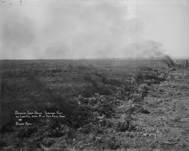 - "Burning Sagebrush. Ferguson Fruit and Land Company 22 miles west of Twin Falls, Idaho."