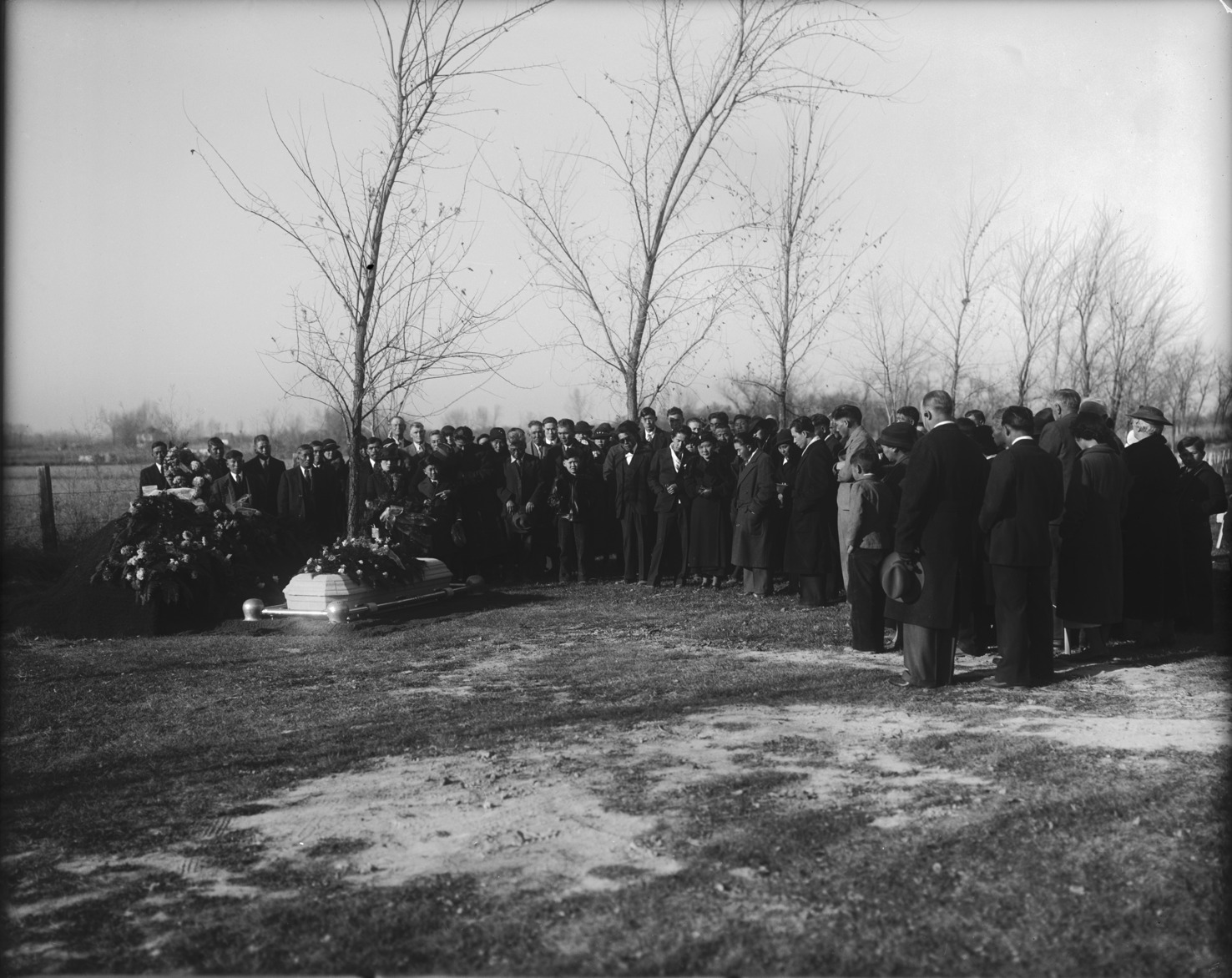 - A grave-side ceremony during a Twin Falls funeral, with a large crowd of mostly Asian Americans gathered near the coffin