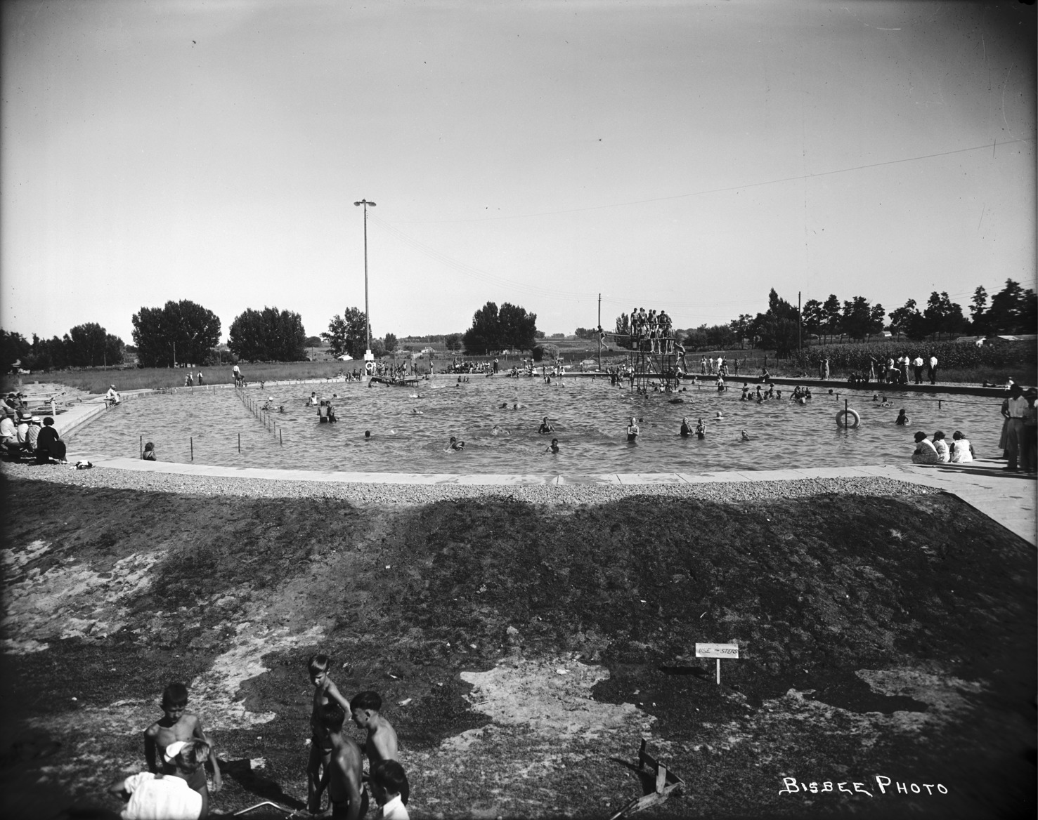 - Harmon Park; the swimming pool with bathers/swimmers.