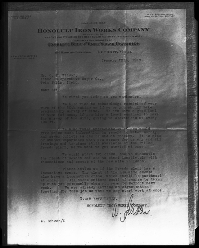 - A letter from the Honolulu Iron Works Company.