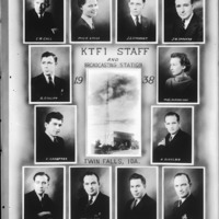 - A composite photo of station KTFI and individual portraits of its staff members in 1938.