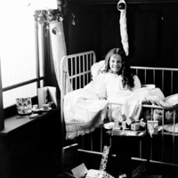 - "Christmas Morning"; a child (girl) sitting in a crib. Christmas Theme Photoshoot