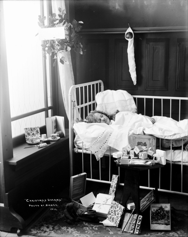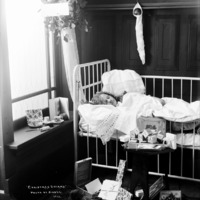 - "Christmas Dreams"; a child (girl) asleep in a crib. Christmas Theme Photoshoot