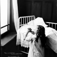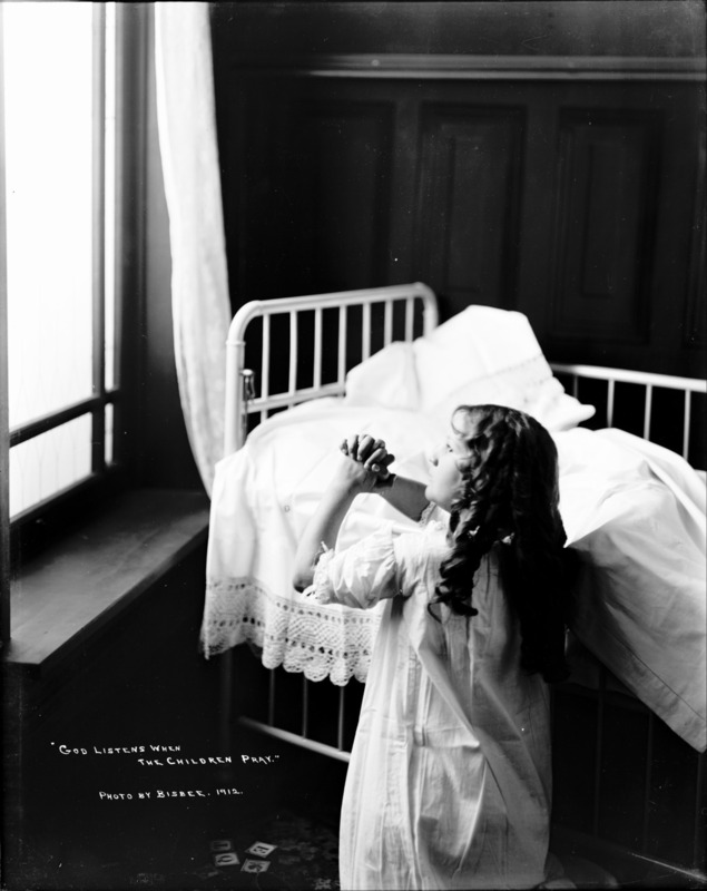 - "God Listens When Children Pray"; a child (girl) at prayer by a crib. Christmas Theme Photoshoot
