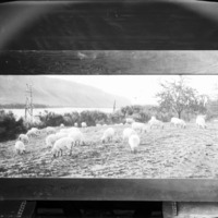 - A band of sheep, in a picture mounted in a wooden frame.