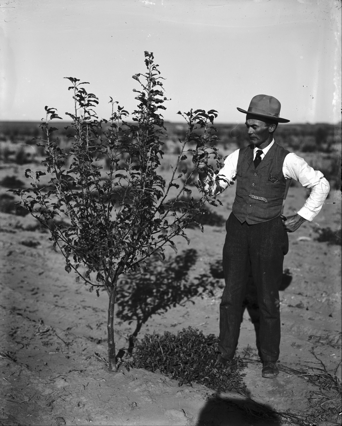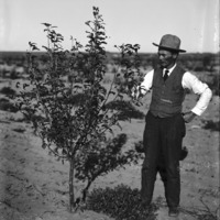 - A man beside a fruit tree.