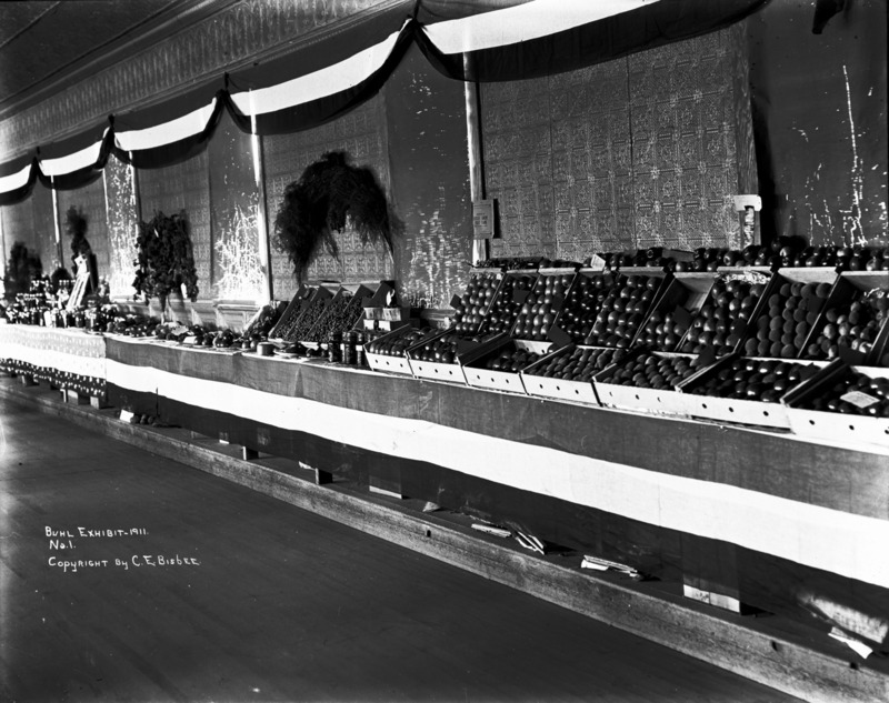 - "Buhl Exhibit - 1911; No.1;" produce exhibited in a large room for the County Fair