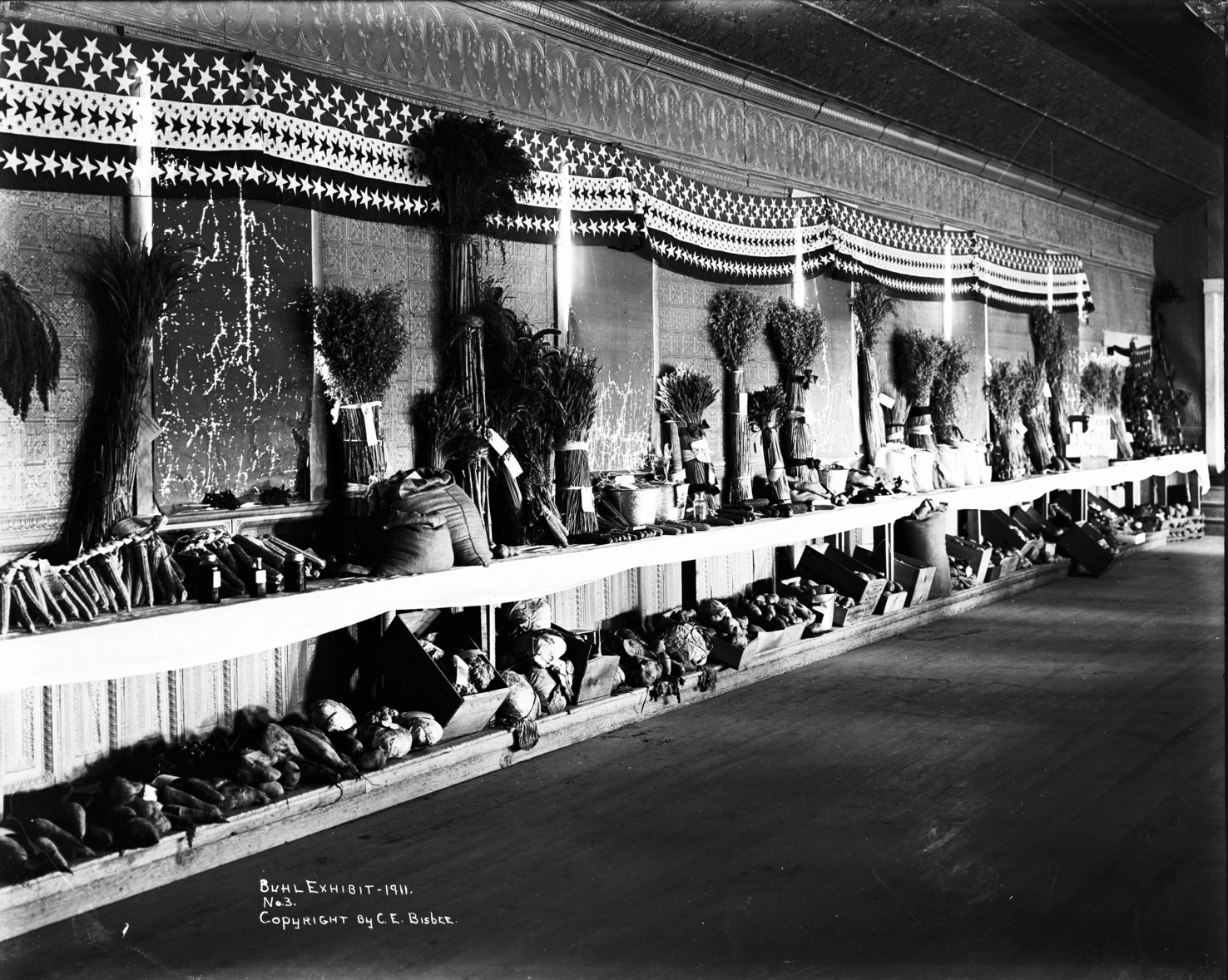 - "Buhl Exhibit - 1911; No.3;" produce exhibited in a large room for the County Fair