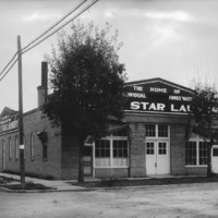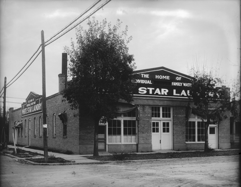 - White Star Laundry; a large, brick building.