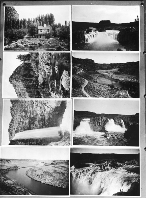 - A collage of eight photographs of various scenic sites along the Snake River, including the Shoshone Falls, the Perrine House at Blue Lakes, the Twin Falls, and the Perrine Coulee waterfall.