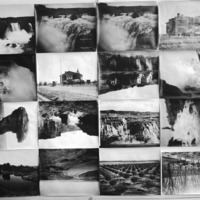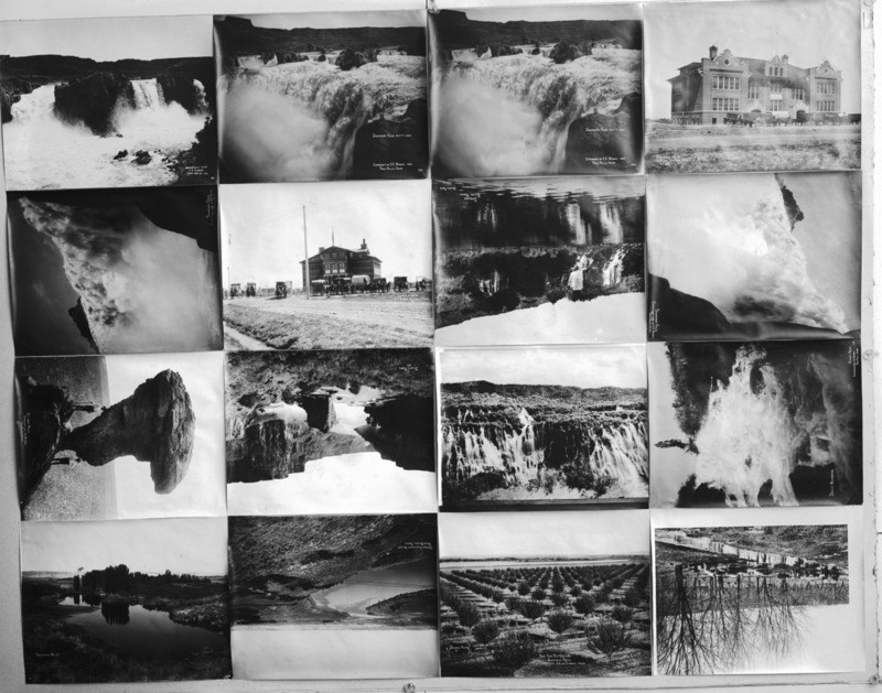 - A collage of sixteen photographs of local scenic sites, including Twin Falls, Shoshone Falls, Balanced Rock, Hagerman Valley, Bickel Elementary, Thousand Springs, Lincoln Elementary.