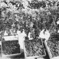 - "Grapes, Perrine's Ranch, Twin Falls, Idaho;" three boxes of grapes below vines.