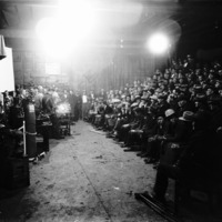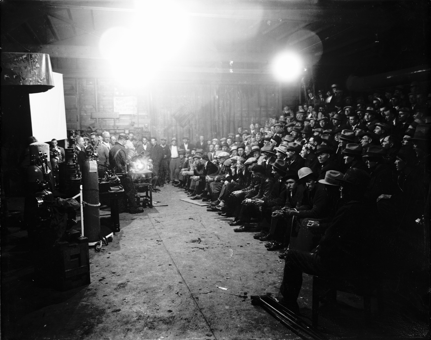 - A welding exhibition before a large group of men.