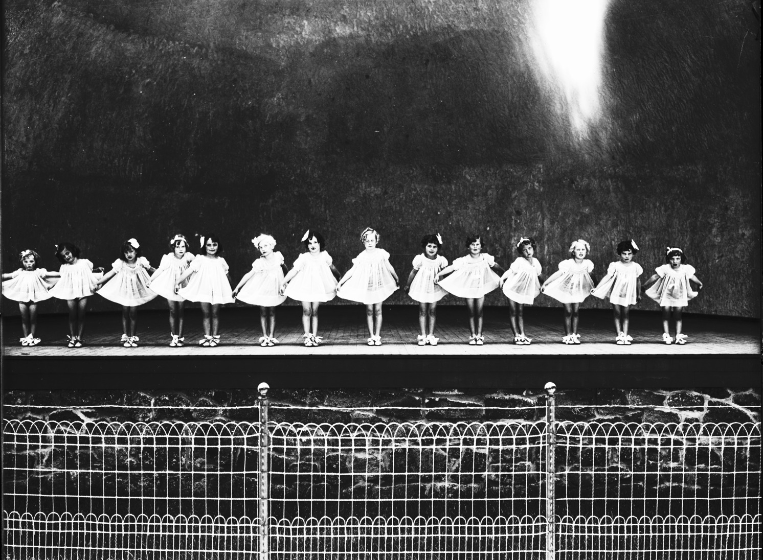 - Young girls on stage at the City Park band shell (bandshell) as part of a musical revue.