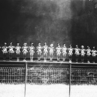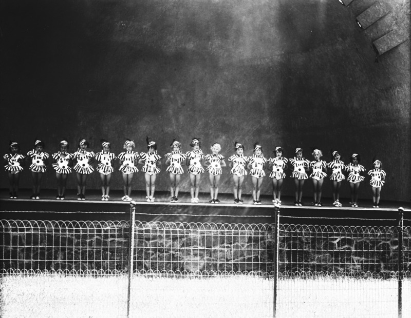 - Young girls on stage at the City Park band shell (bandshell) as part of a musical revue.