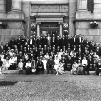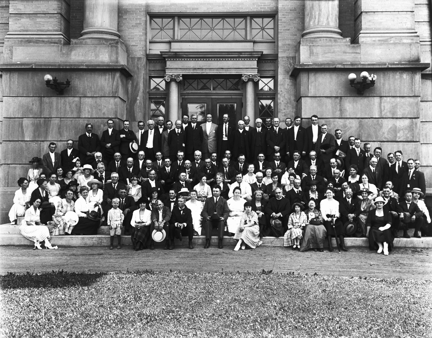 - Large group of people posed on the steps of the Twin Falls County Court House.