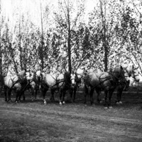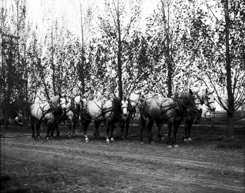 - A team of six horses, harnessed up, without vehicles.