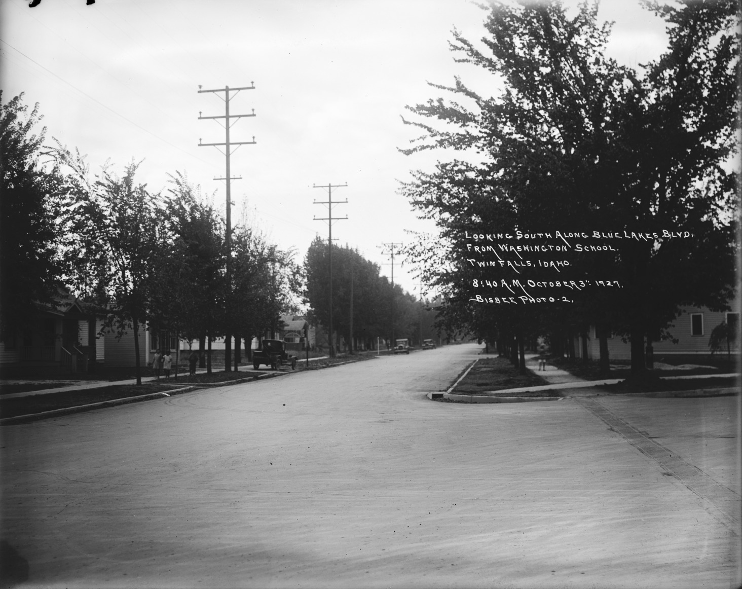 - "Looking South along Blue Lakes Blvd, from Washington School; October 3, 1927"