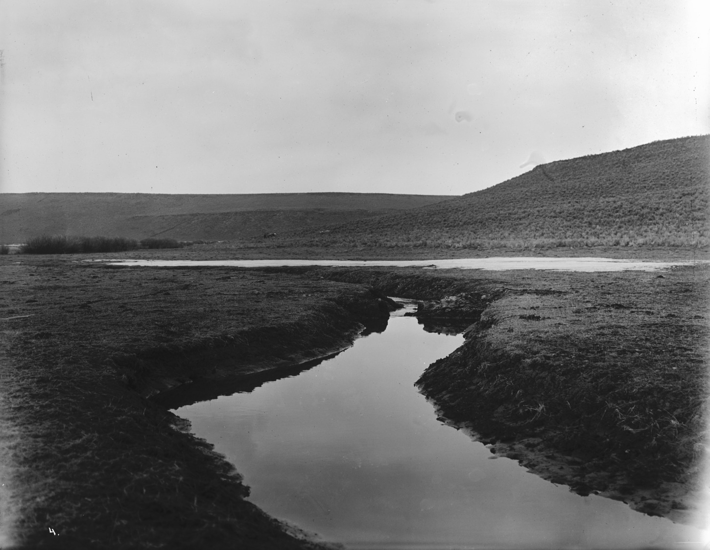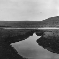 - An arm of the reserior, and a canal, below the ridge of hills at Milner Dam.