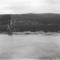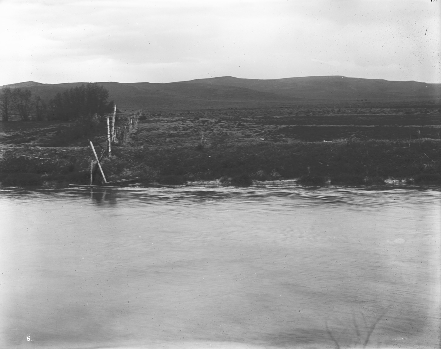 - A line of fence entering a canal.