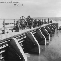 - "Headgates, Main Canal; March 10, 1905;" several people stand on the headgates at Milner Dam.