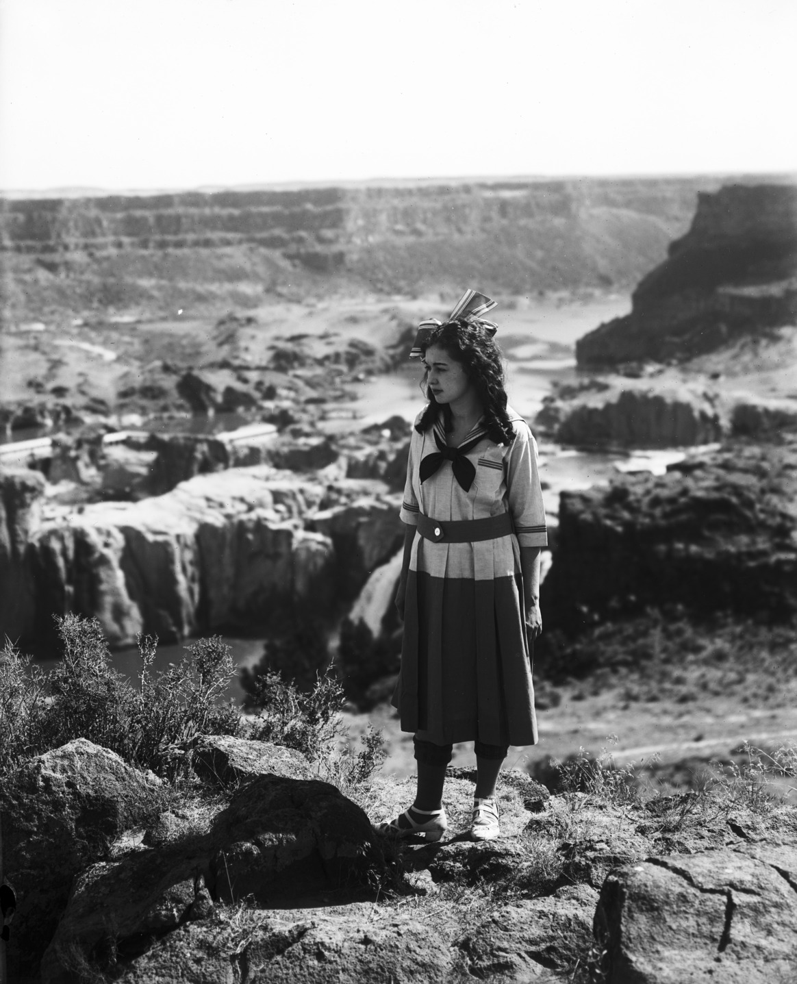 - A portrait of a young woman on the Snake River Canyon rim, overlooking Shoshone Falls.