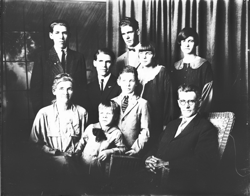 - Portrait of a family of nine (three women, four men, two boys).