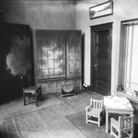 - Interior of the Bisbee Studio, with props and backdrops.