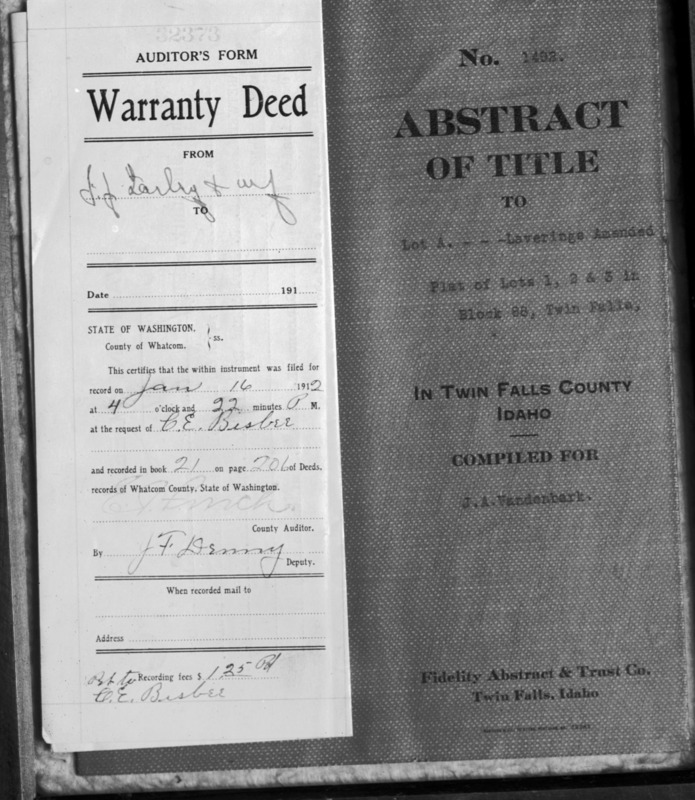 - Abstract of Title for the Bisbee Studio (Lots 1, 2, and 3 of Block 88.