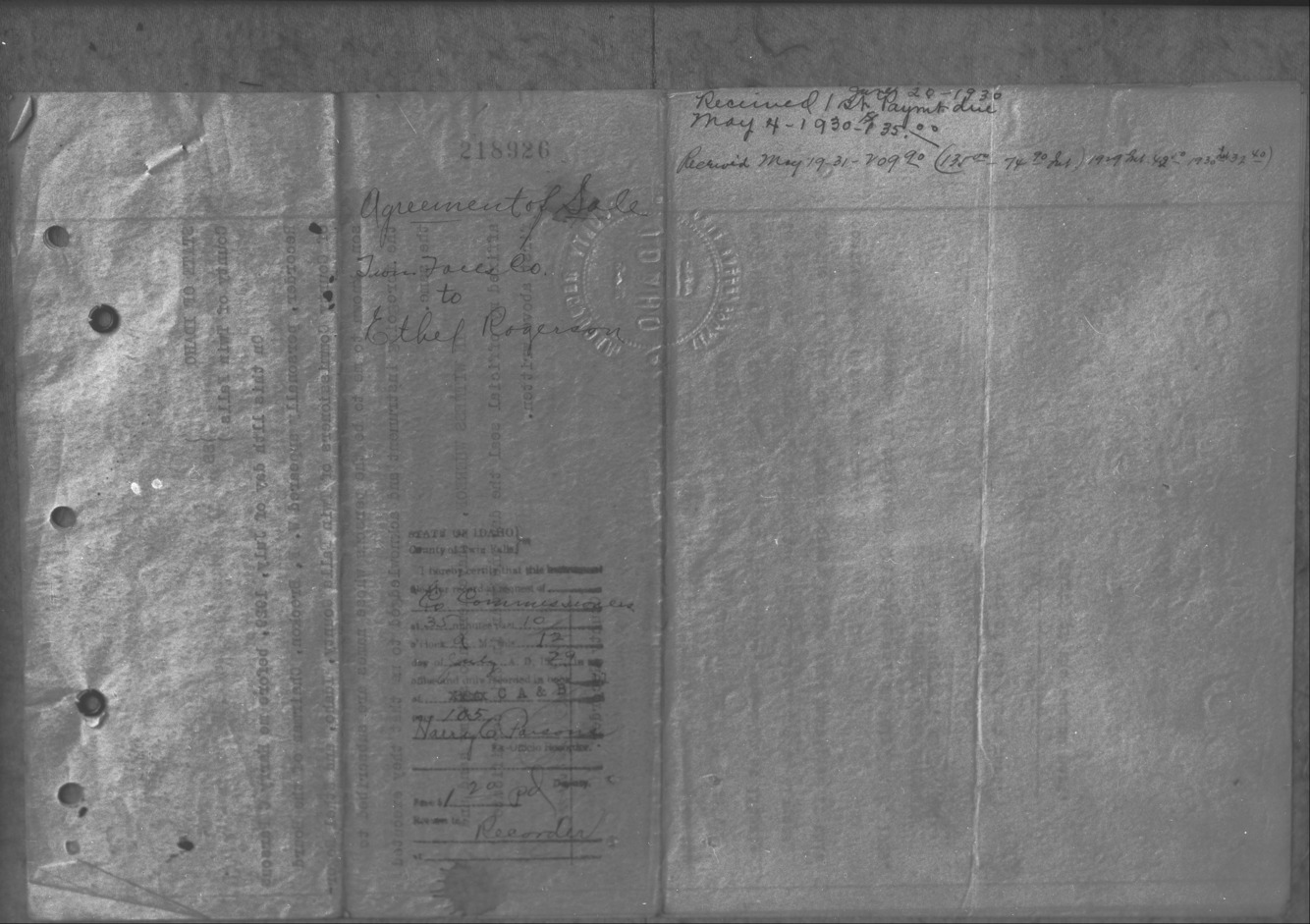 - An agreement of sale between Twin Falls County and Ethel Rogerson.