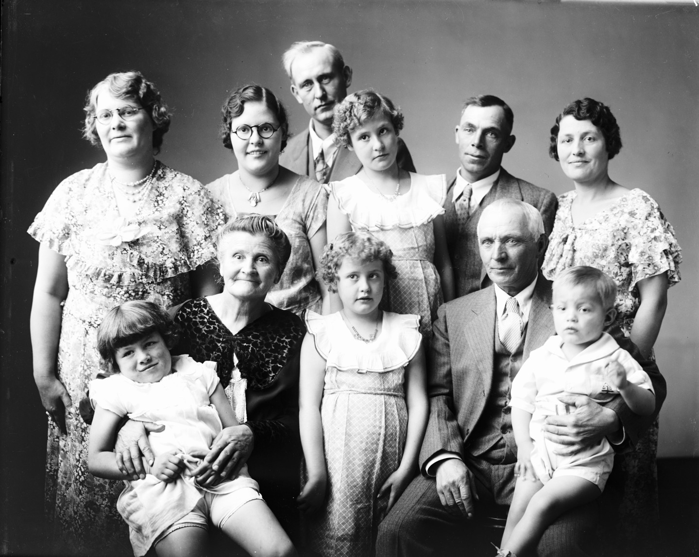 - Portrait of a family of eleven people (three men, four women, three girls, and one boy).