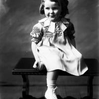 - Portrait of a little girl, seated on a bench.