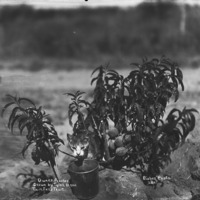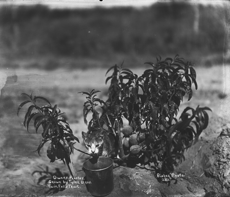 "Dwarf Peaches, Grown by Tyler Brothers, Twin Falls Tract;" Tiny peach tree