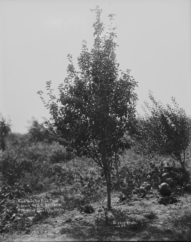 "Four year old Pear Tree, Grown by S.C. Sexton, 4 miles west of Twin Falls, Idaho."