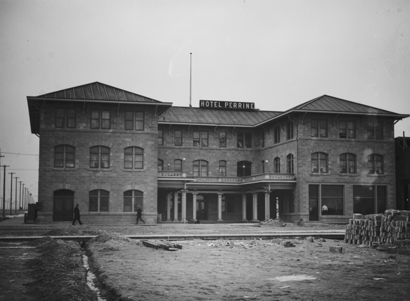 - The Hotel Perrine, soon after construction. Building materials on the lot across Main Ave (foreground).