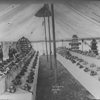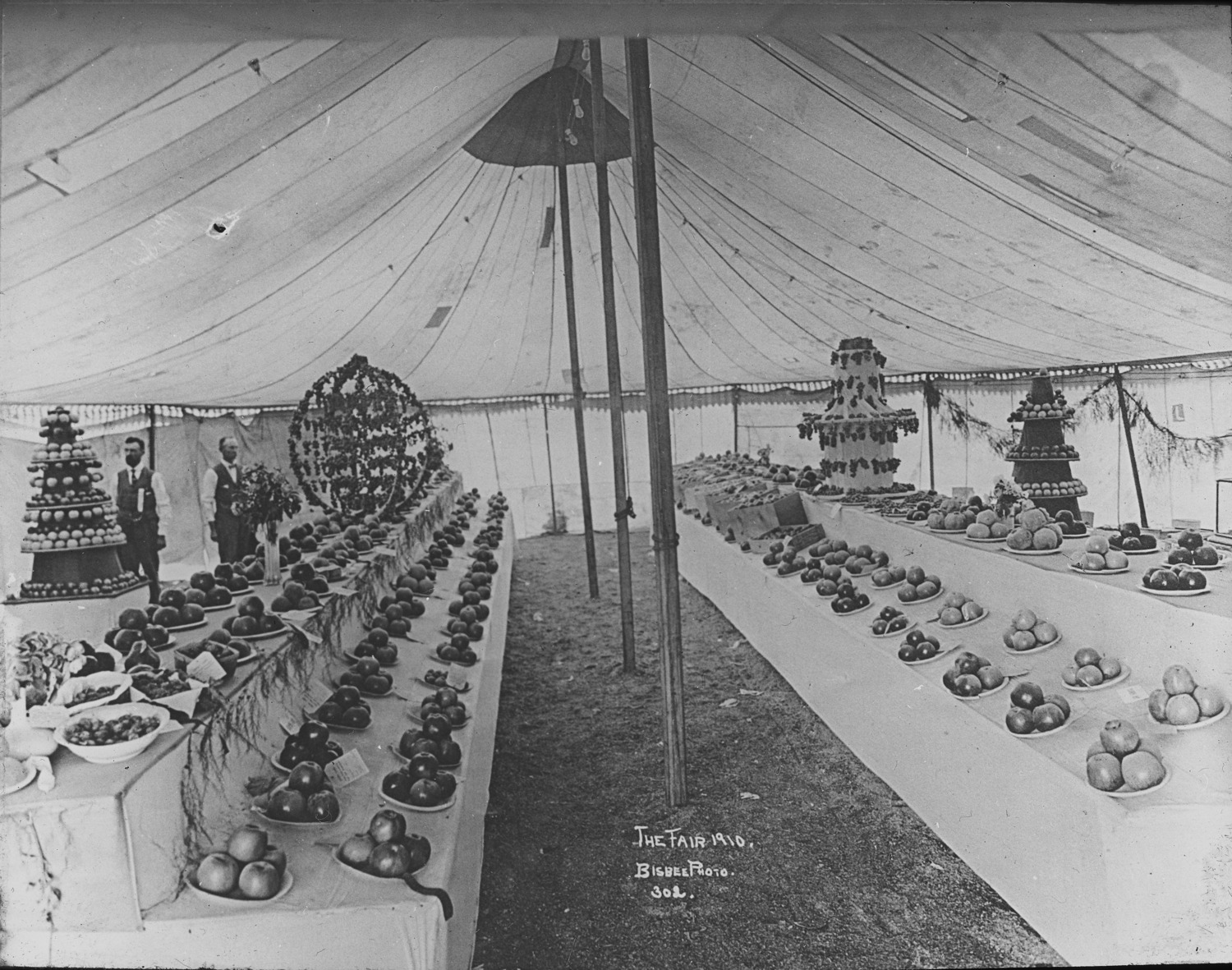 - "The Fair 1910;" Two men, perhaps judges or officials, looking at the exhibits in a tent.