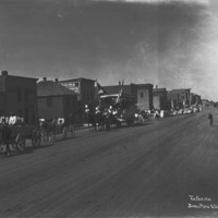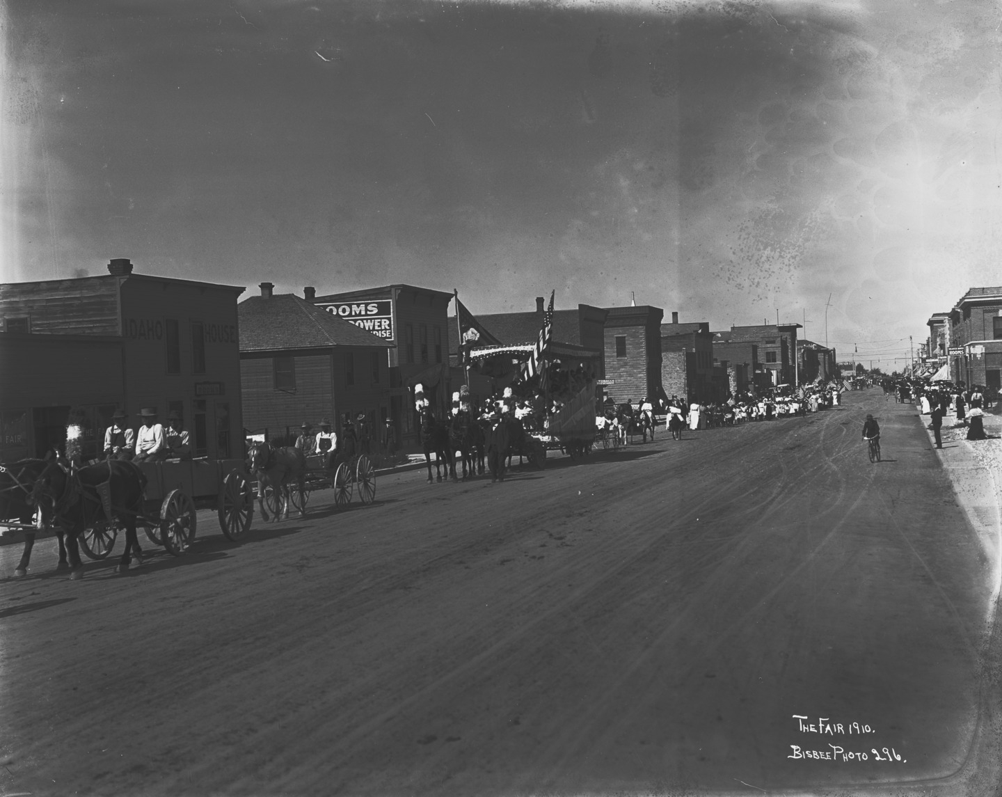 - "The Fair 1910;" parade on Main Street, with floats and wagons.
