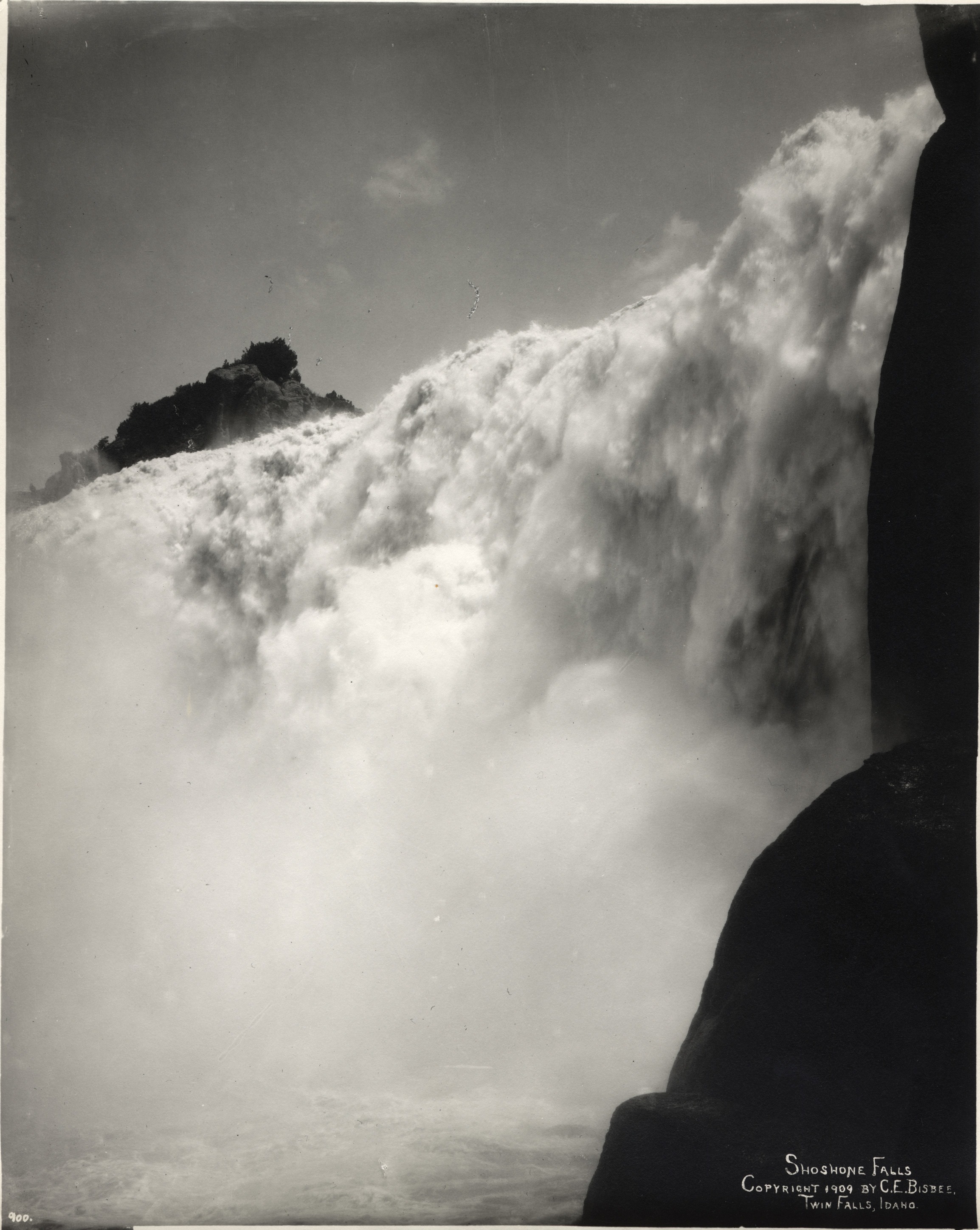 - "Shoshone Falls, 1909;" view of Falls from rocks below
