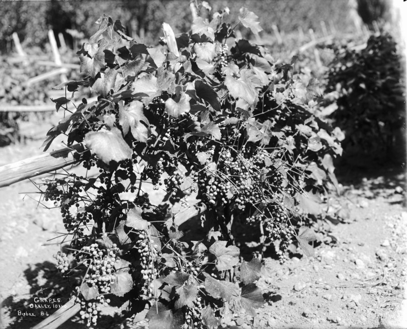- "Grapes. Oakley, Idaho;" grapes growing along a wooden fence