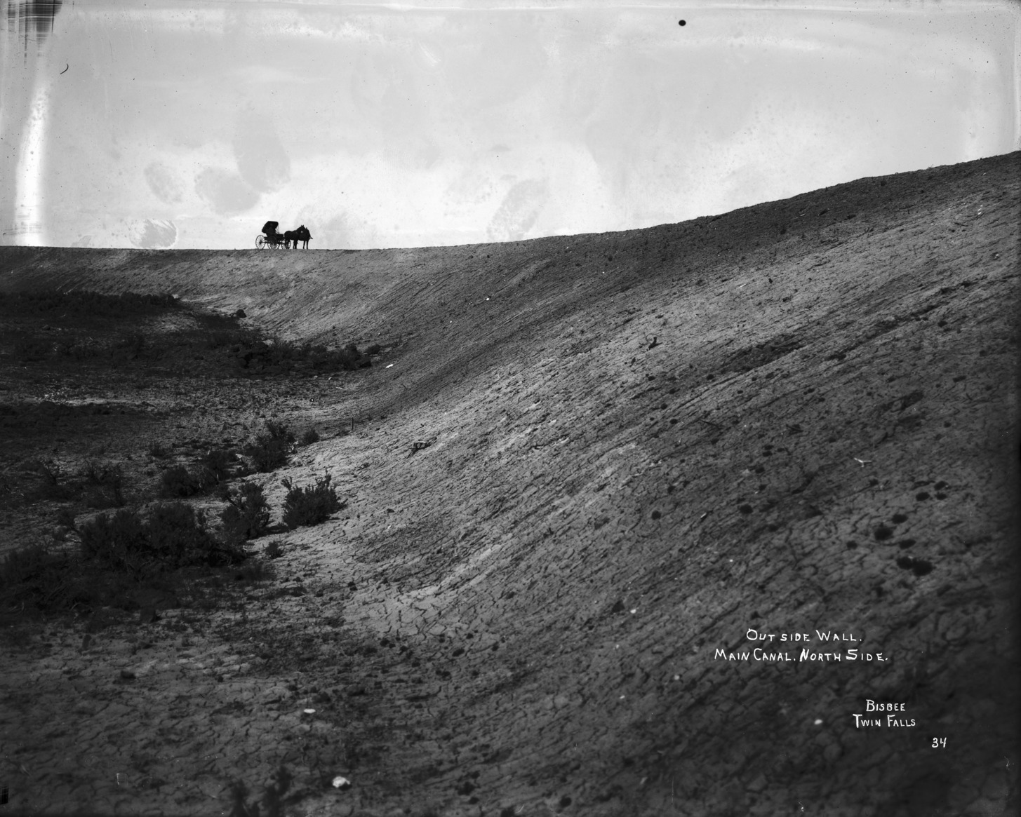 - "Outside Wall, Main Canal. North Side;" two horses and buggy stand at the top of the canal wall