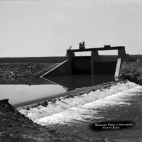 - "Showing Point of Diversion. North Side;" water flowing over diversion channel near gates
