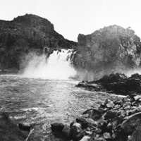 - Wide view of the Twin Falls from the Snake River. Only two channels are visible.