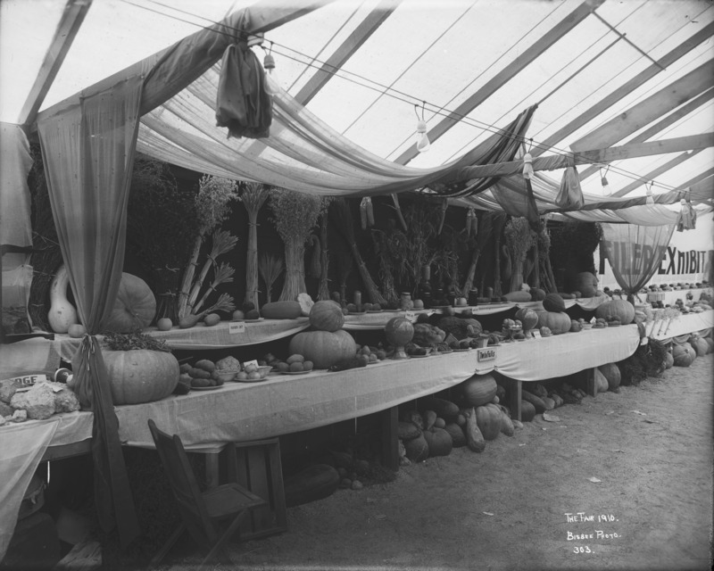- "The Fair 1910;" Twin Falls produce display, primarily vegetables, in tents. Filer Exhibit on far right