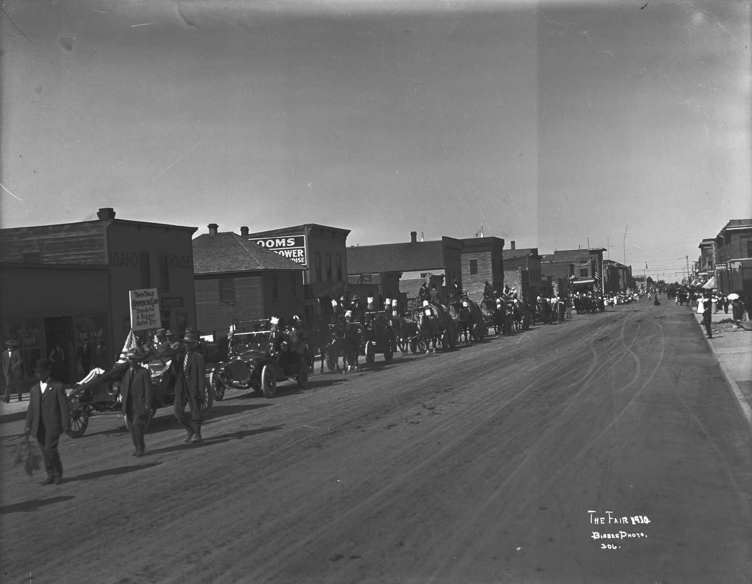 - "The Fair 1910;" parade down Main Street, Twin Falls Commercial Club featured