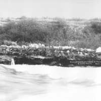 - "View of Low Line Canal in Pete Link's field; September 11, 1912;" water rushed along canal, eedged by rocks and sage brush.