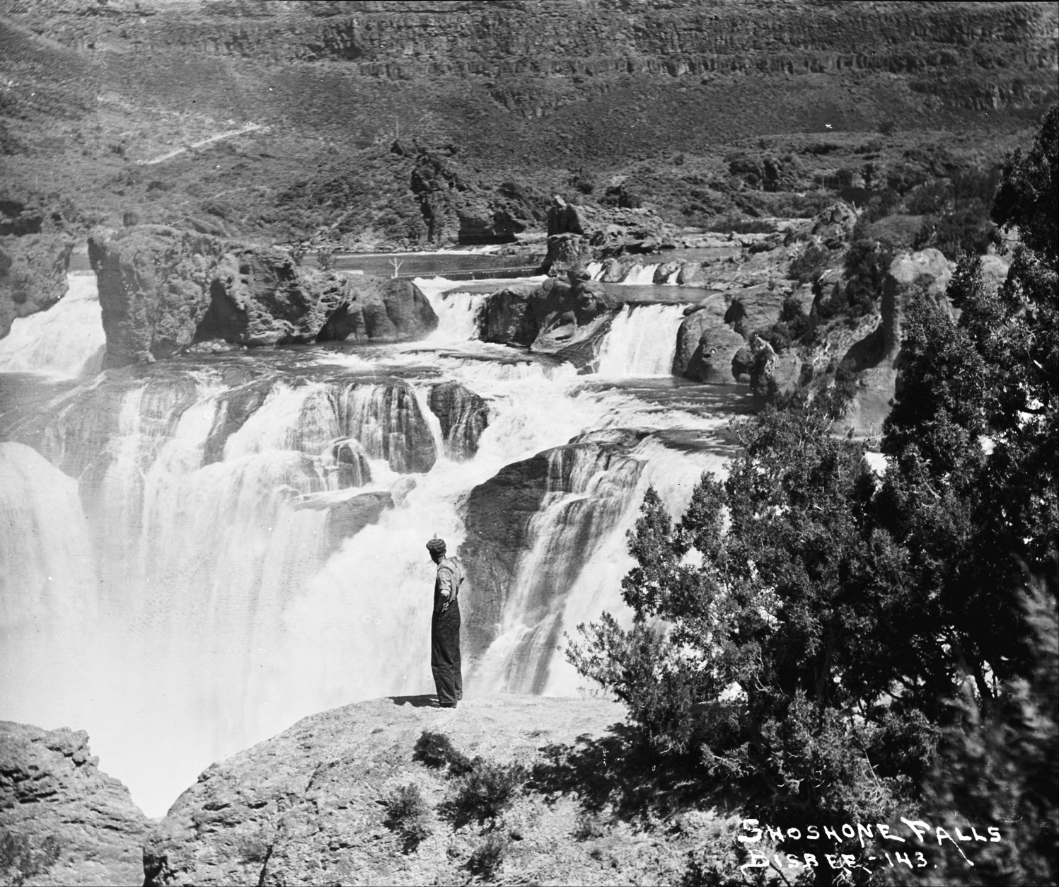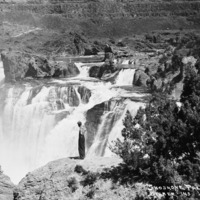 - "Shoshone Falls;" a man views the Falls from a rocky overlook